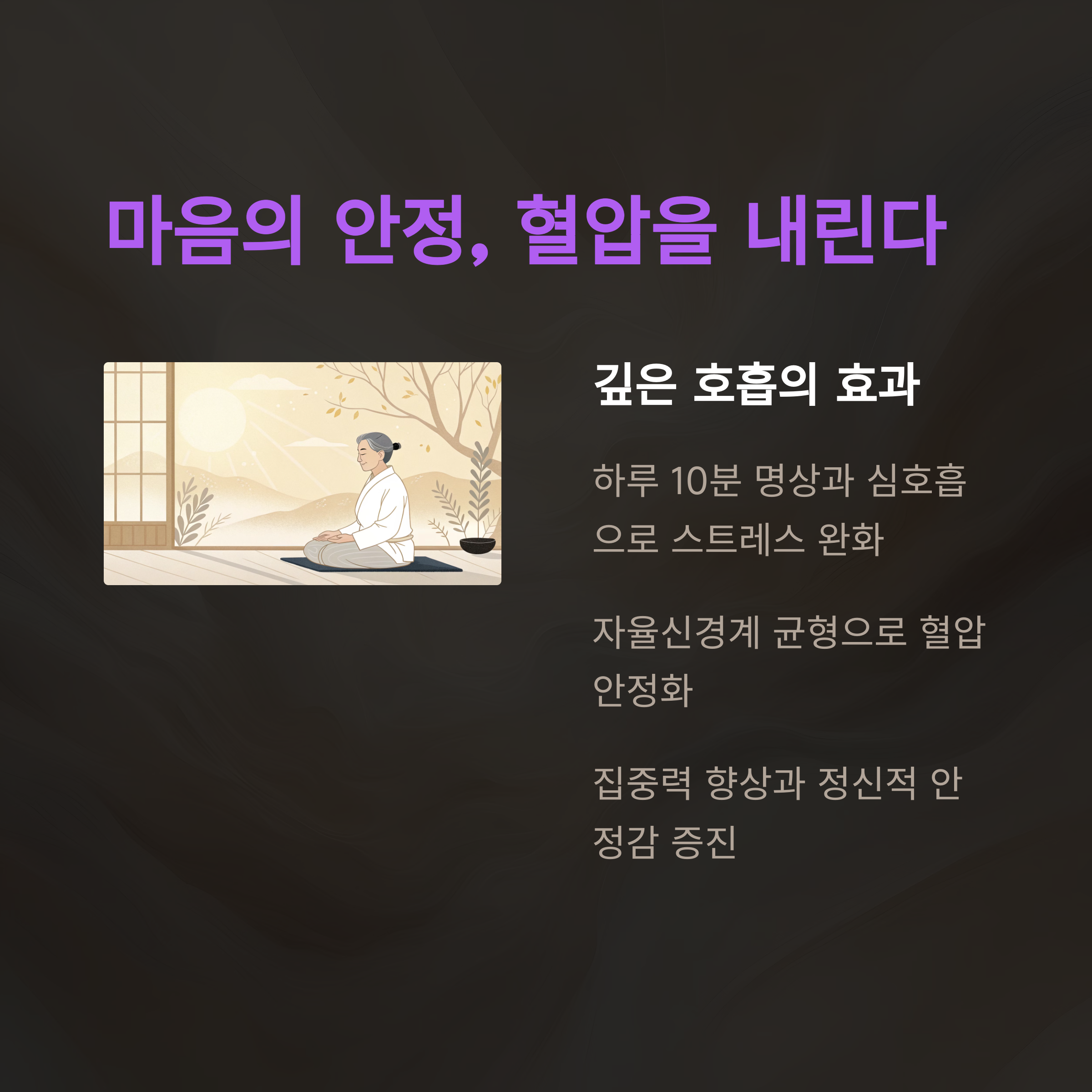 매일 10분, 조용한 공간에서 숨을 깊게 쉬는 것만으로도