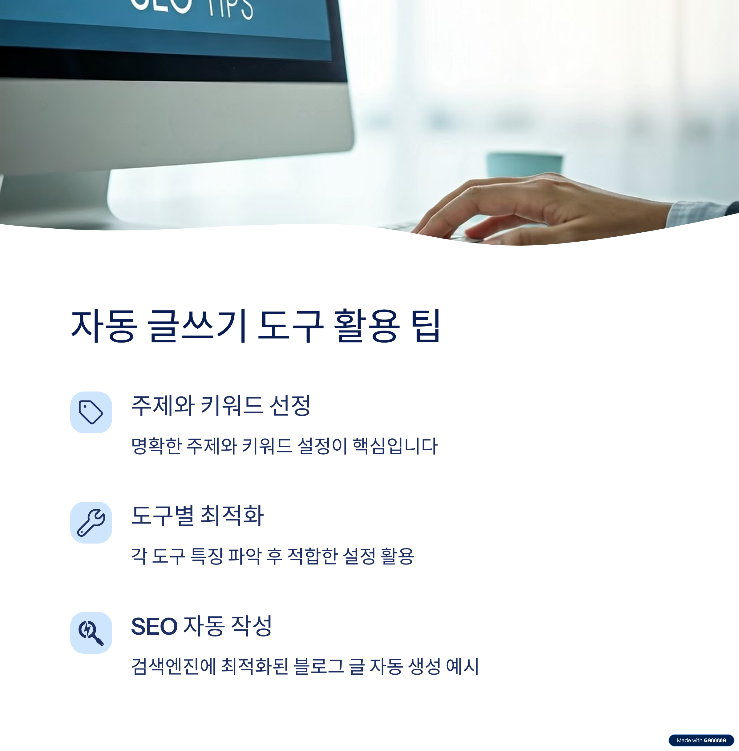 자동 글쓰기를 성공적으로 활용하려면 단순히 생성된 글을 그대로 복사하는 것이 아니라 자신의 관점과 경험을 더해 차별화된 콘텐츠로 다듬는 과정이 필요합니다. 예를 들어, 노션 AI로 뼈대를 만든 후 구체적인 사례와 감정을 담아 스토리텔링을 가미한다면 독자에게 더욱 진정성 있는 콘텐츠를 전달할 수 있습니다. 또한, SEO를 고려한 키워드 삽입이나 문단 구성까지 자동화 도구와 직접 작성의 장점을 결합할 때 진정한 시너지가 발생합니다. 중요한 건 기술이 아니라 활용 방식이라는 사실을 잊지 말아야 합니다.