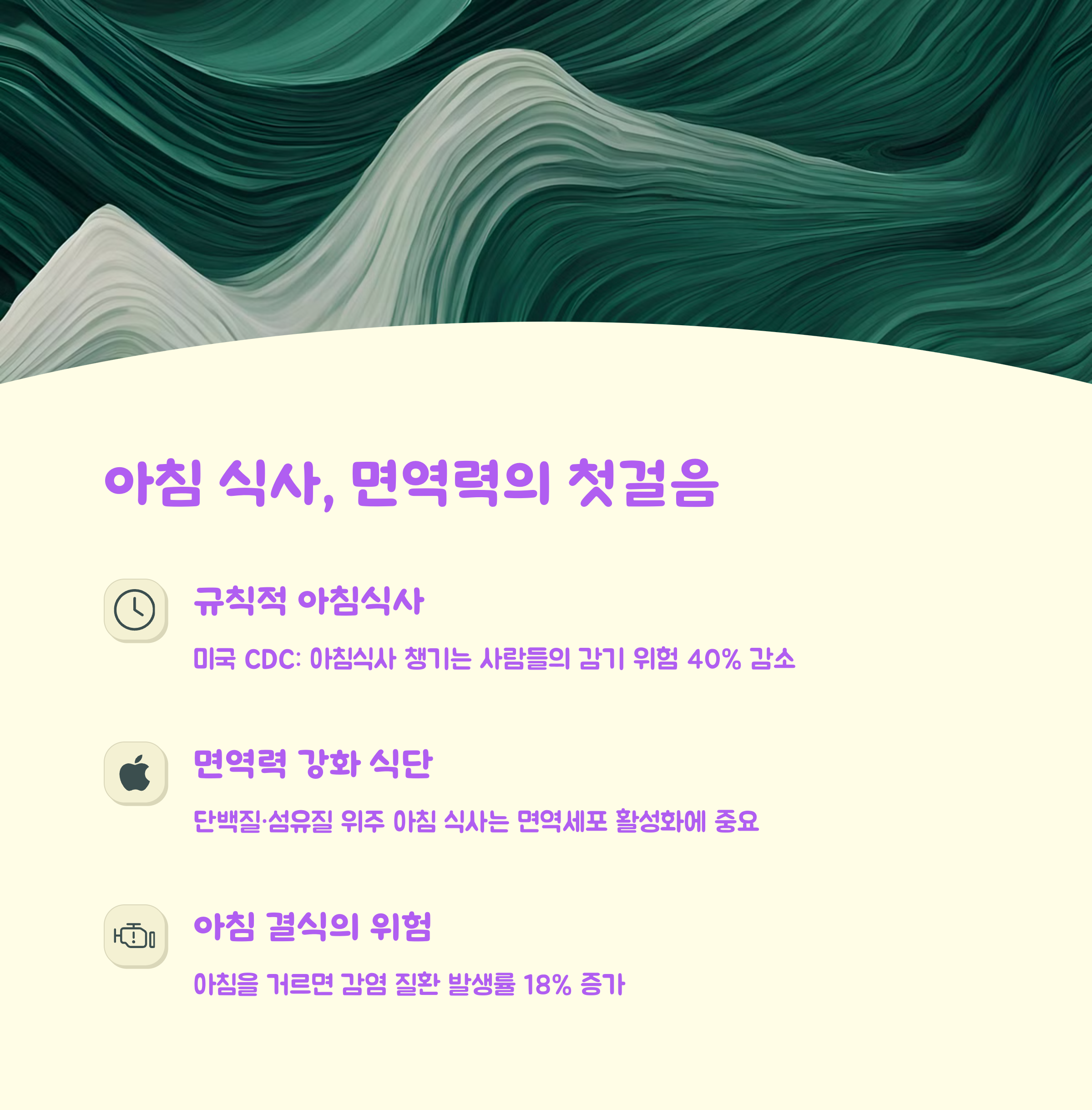 "아침은 하루 면역력의 시동 버튼"이라는 걸 기억하세요 ☀️
