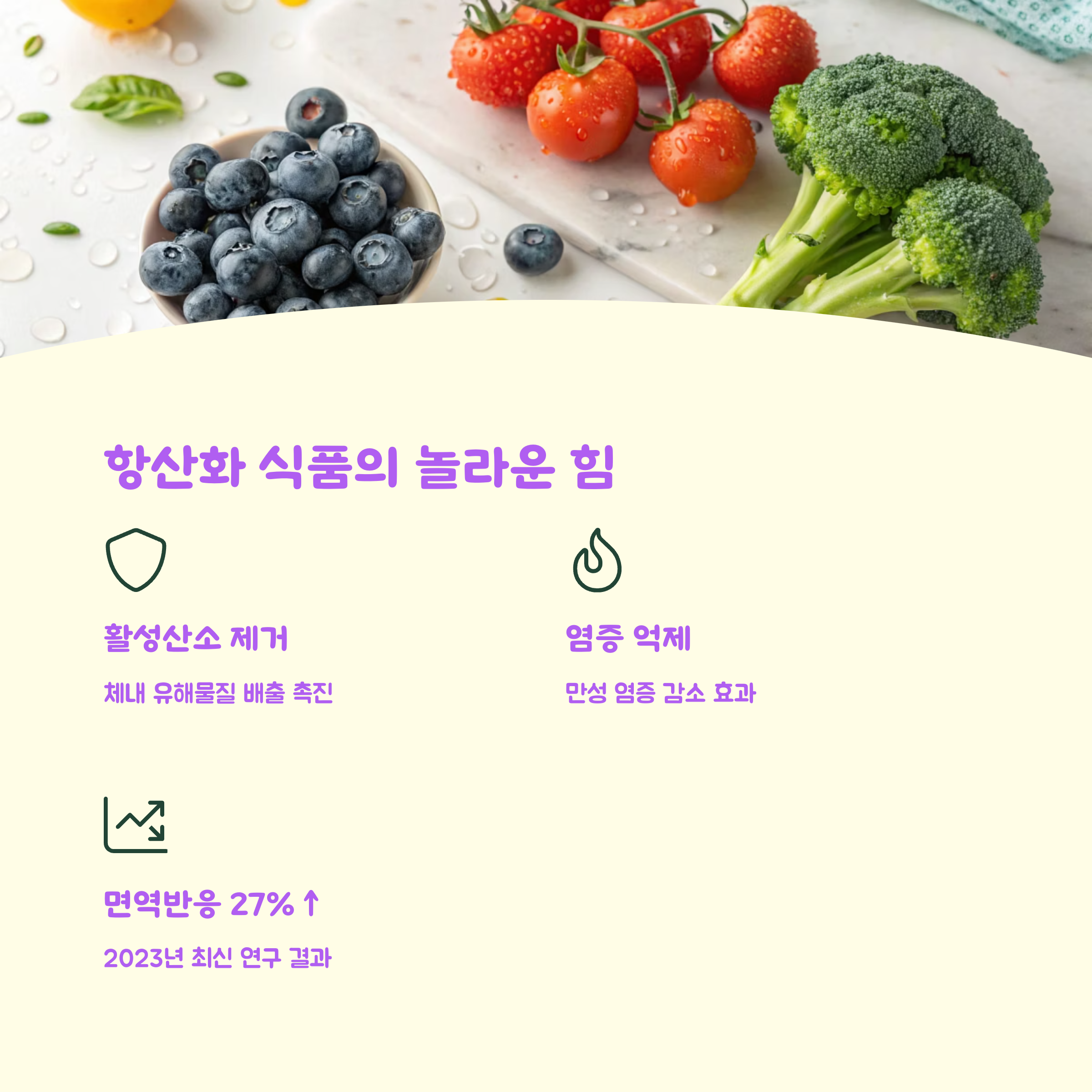 "항산화는 면역력의 내부 청소부"라 할 수 있답니다 🍓🥦
