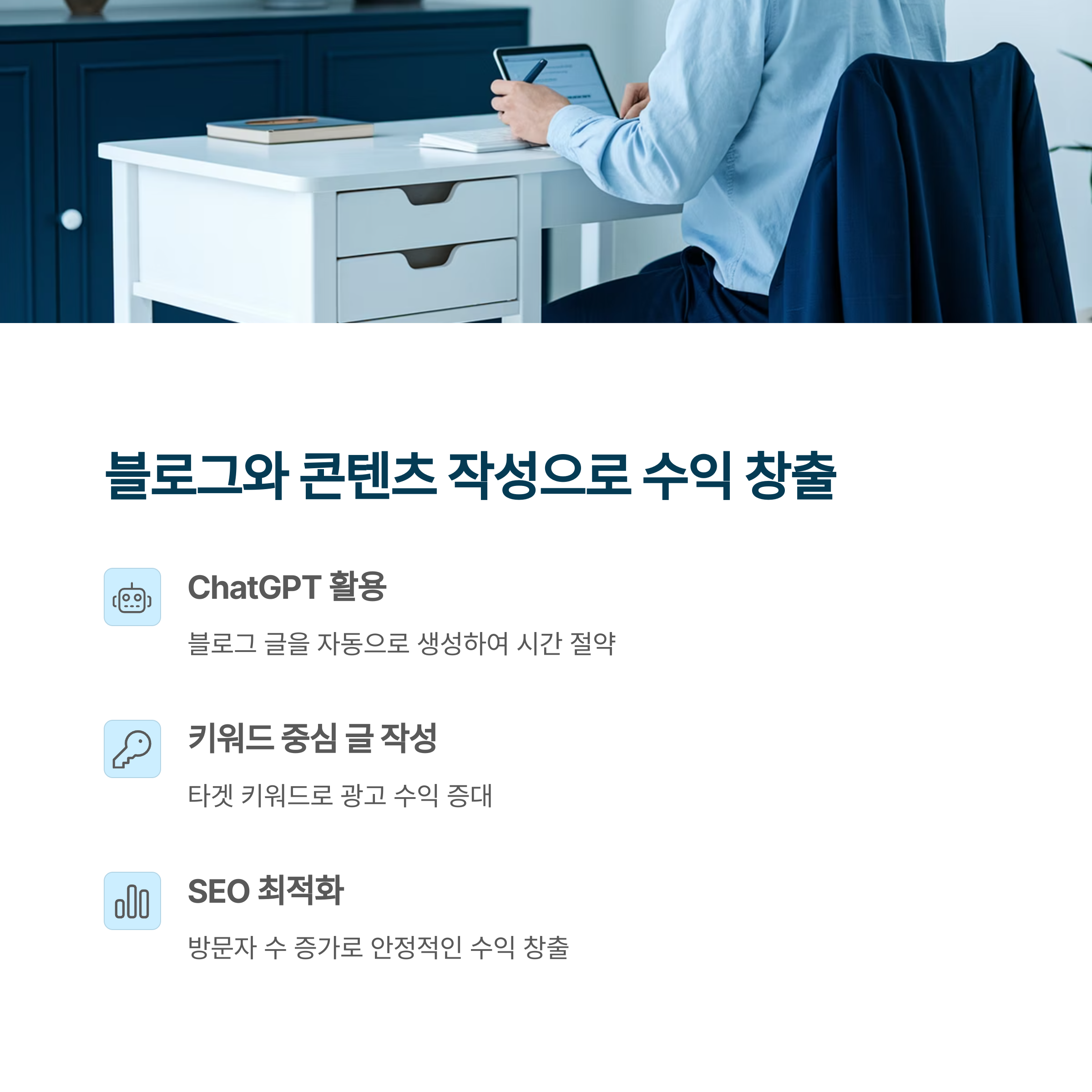AI 부업은 단순한 트렌드가 아닌, 앞으로의 시대 흐름 속에서 누구나 일상 속에서 수익을 창출할 수 있는 새로운 방식입니다.